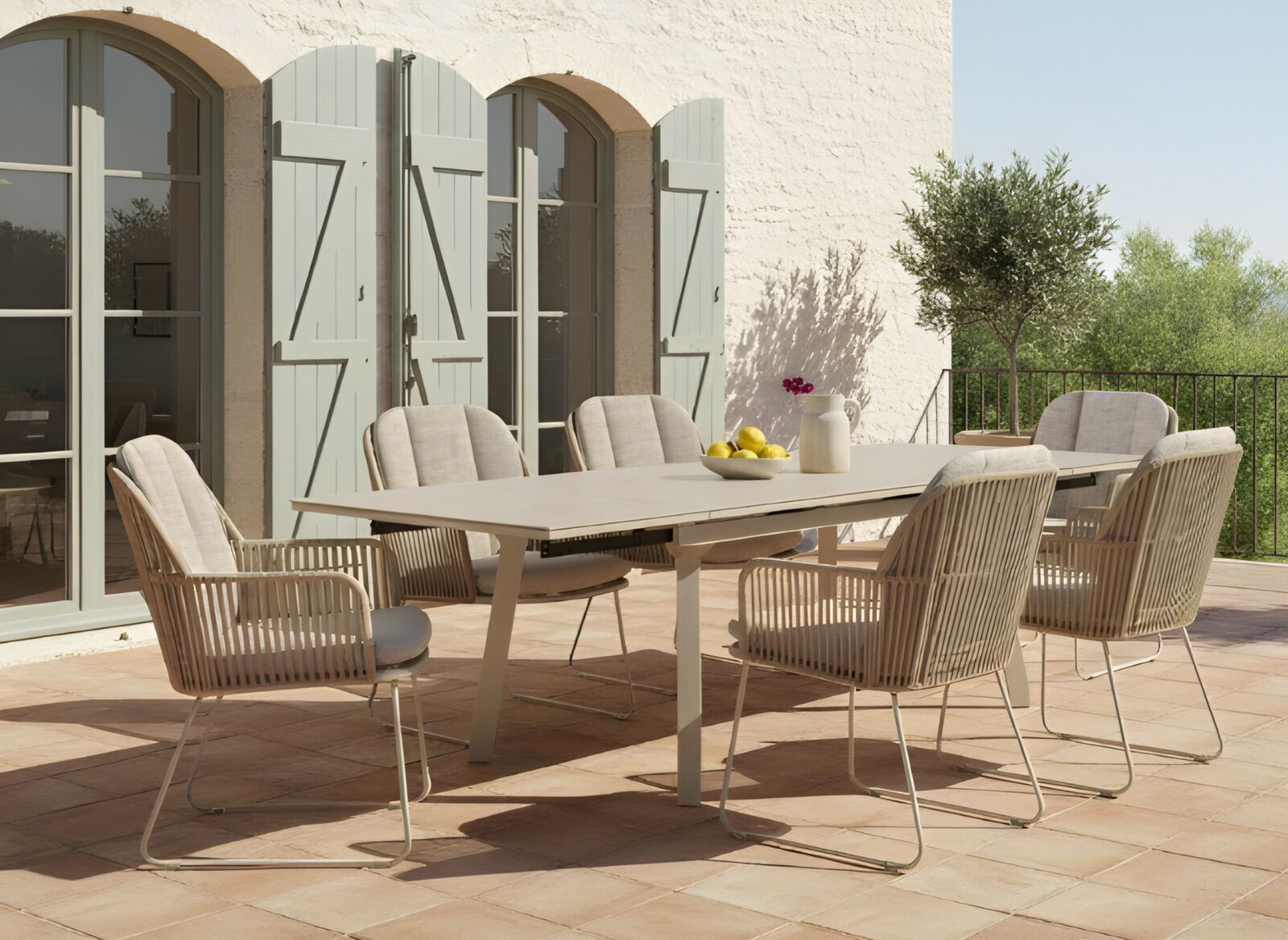 Ce mobilier de jardin est fabriqué sur une structure aluminium recouvert d’une peinture époxy, si bien qu’il peut même être utilisé dans les zones proches de la mer.