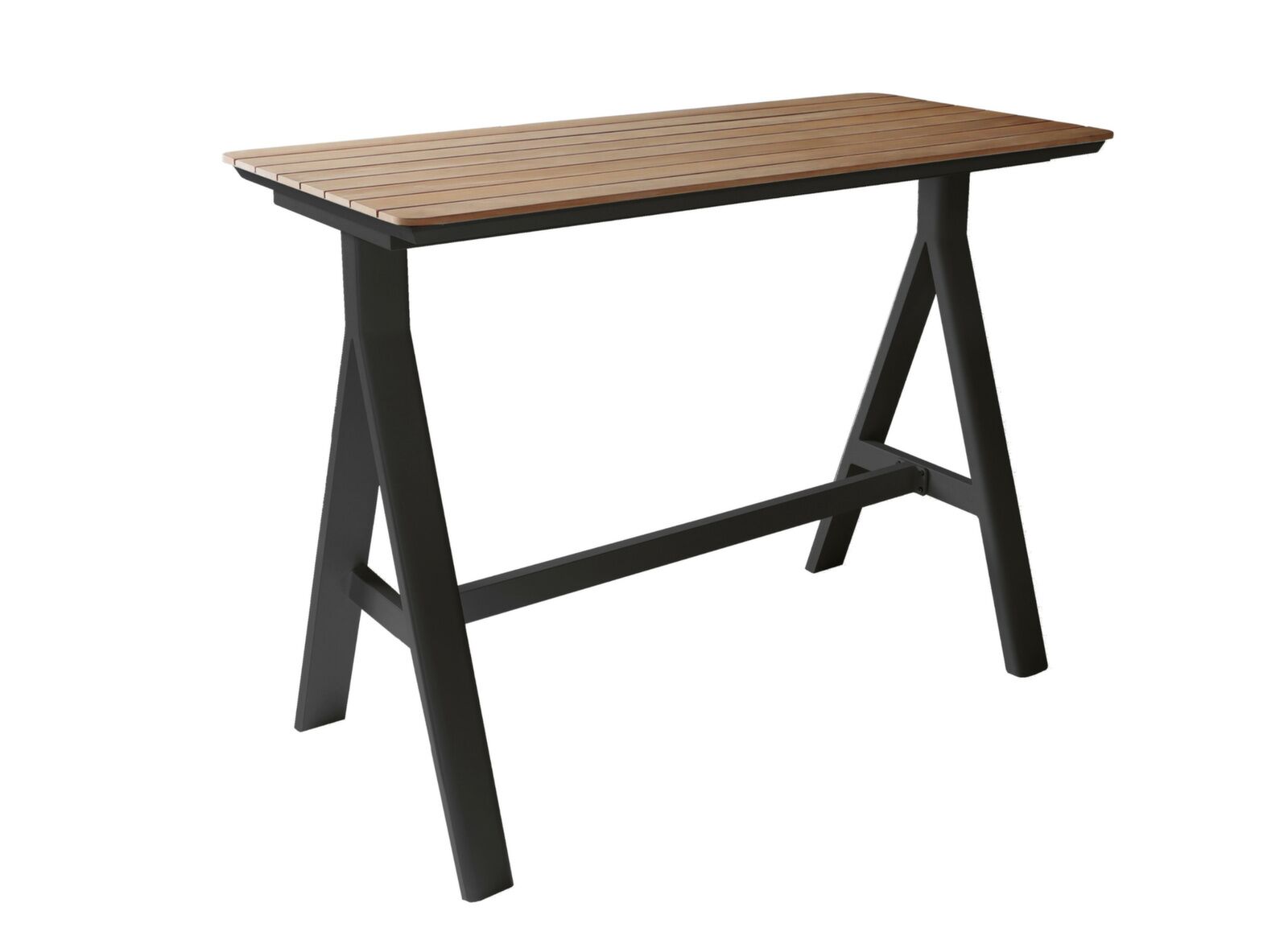 Les particularités de la table haute Leather, plateau teck FSC® :